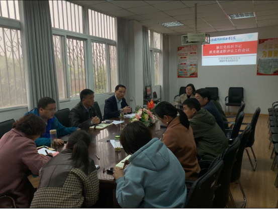 本网讯(经贸管理学院 张圣霞)根据校组人函〔2021〕9号《关于做好2020年度党组织书记抓党建工作述职评议考核的通知》精神,3月31日下午,经贸管理学院在知行楼204会议室召开党组织书记抓党建述职评议考核会。学院党总支委员会委员、各党支部委员会委员、党员和群众代表参加会议。会议由党总支书记杜先扬主持。