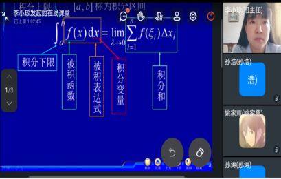为确保线上教学的质量,在周晓梅老师的指导下,基础部数理教研室在5月18日下午开展了一次线上教学公开课,本次主讲的两位老师分别是李小珍老师和李珺凯老师,两位李老师在当天下午利用线上课堂分别讲授高等数学中定积分的性质与概念和中职物理中运动电荷在磁场中的受力情况,两位老师在线上课堂激情四射,认真负责,灵活运用地将信息技术与课程内容紧密结合,课程内容也是条理清晰,重点突出,学生们尽管在屏幕前面,但是也被两位的热情和负责感染,频频通过网络与老师们在线上互动,整个线上教学过程的效果非常好,得到学生们的认可,也得到了听课教师们的好评。