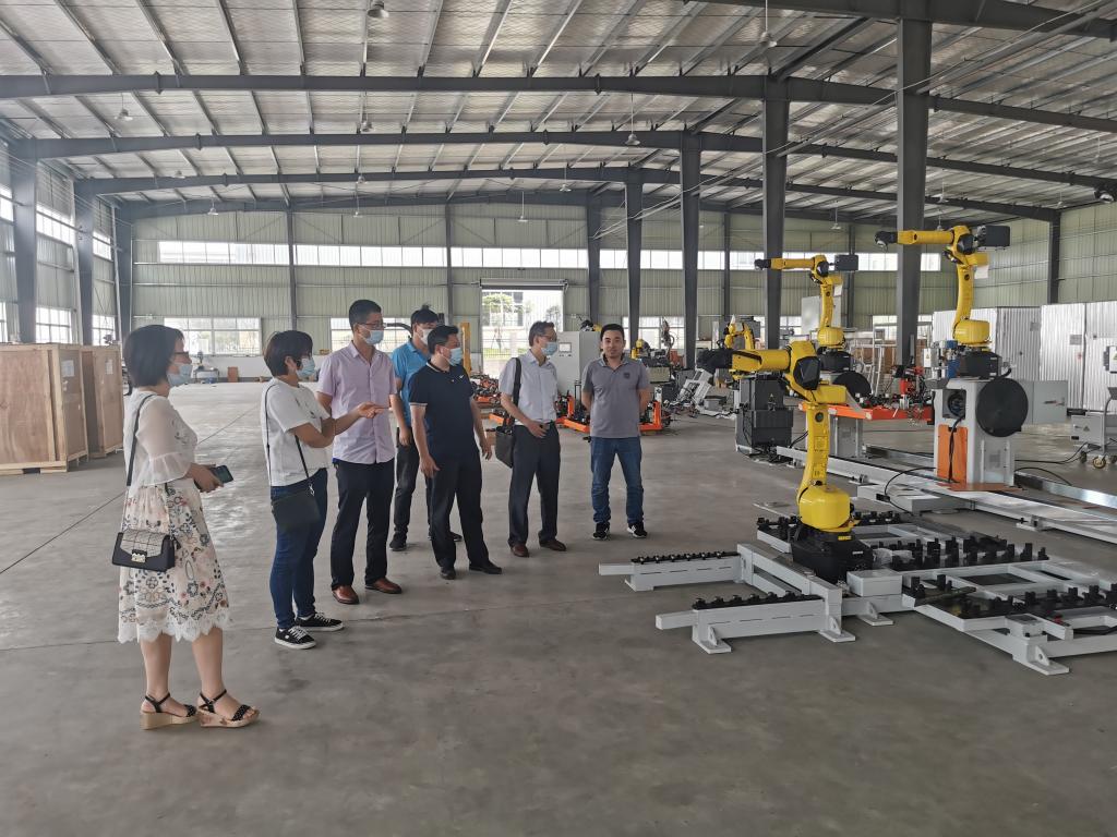 本网讯(电气技术学院 吴年祥)为进一步推动学院智控技术专业群毕业生就业工作,拓宽就业渠道,更好的服务地方企业,积极推行校企协同育人,2021年6月4日,电气技术学院院长李翔、电气技术学院副院长侯国栋、电气自动化技术专业带头人徐丽霞、机电一体化专业带头人王丽、工业机器人技术专业带头人吴年祥一行五人,赴六安经开区安徽米科智能科技有限公司看望beat365毕业生以及洽谈校企合作等事项。