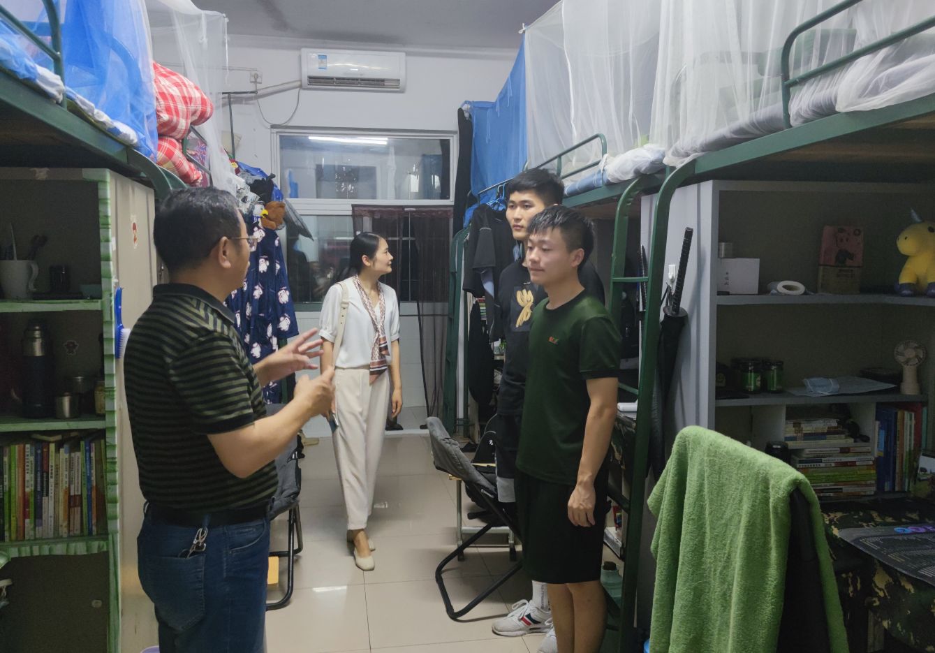 6月28日晚孙武带领检查组,深入6号、7号公寓,主要检查男生宿舍是否存在使用大功率电器、私拉乱接线路、私藏刀具、使用明火、宿舍内抽烟等问题。检查组人员对部分存在问题的宿舍进行了思想教育,并要求当场整改,以确保学生宿舍的安全稳定。