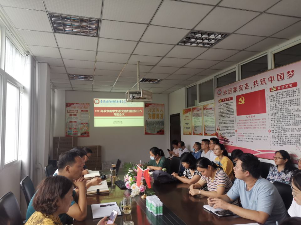 刘峰传达了《关于印发学校秋季开学疫情防控“二案九制”的通知》、《关于做好2021年秋季学期返校安排的通知》等文件精神,并对近期工作进行了详细的布置,他对返校前学生“一码一卡一档”和承诺书、入校前48小时内核酸检测阴性证明等返校信息填报工作及开展“返校第一课”主题班会等方面,提出了明确要求;希望各班主任在班级管理工作中要明确责任,成立分级负责的班级疫情防控小组;要熟练掌握新冠肺炎疫情报告制度,熟悉疫情防控应急处置流程;要精心准备,认真组织开展爱国主义教育、安全教育(防范电信诈骗)、新冠肺炎及秋冬季传染病防控教育、卫生健康和心理健康教育,上好“返校第一课”,确保安全、有序地做好学生返校工作。
