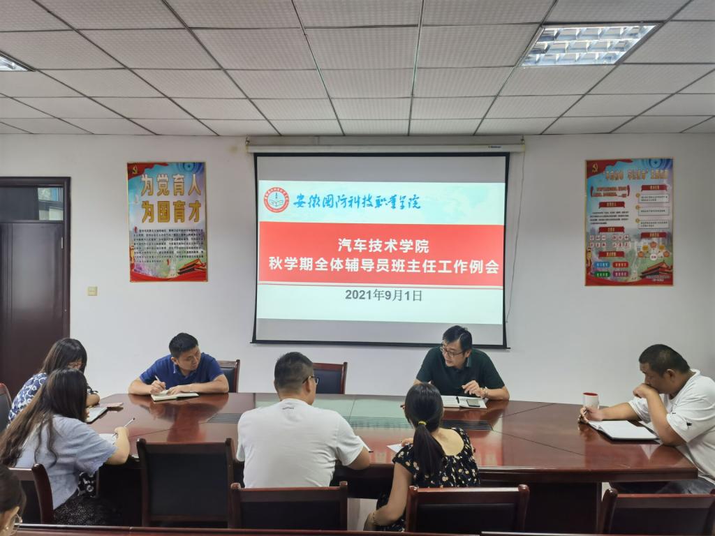 本网讯(汽车技术学院 朱其阳)为深入贯彻落实学校期初全校中层干部会议精神,做好新学期开学相关工作,9月1日下午16:30,汽车技术学院在知行楼416会议室召开全体辅导员、班主任工作会议,学院党总支副书记余桂刚主持会议,全体辅导员及新老生班主任按时参加。