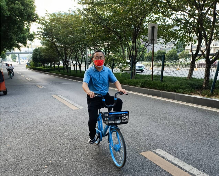 下午3时许,在郑苇苇的陪同下,孙书记实地考察学生可能住宿的几个地方,并亲自骑上共享单车,体验路途时间,以帮助学生更好地进行判断,做好住宿选择。