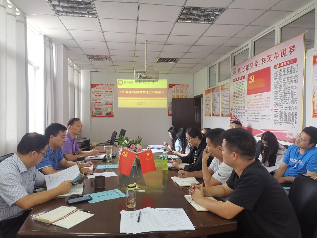 本网讯 根据学校工作部署,9月9日下午,经贸管理学院召开2021年迎新暨学生军训工作专题会议,院党总支书记杜先扬、副院长杨学分、全体辅导员及2021级班主任参加会议,会议由院党总支副书记刘峰主持。
