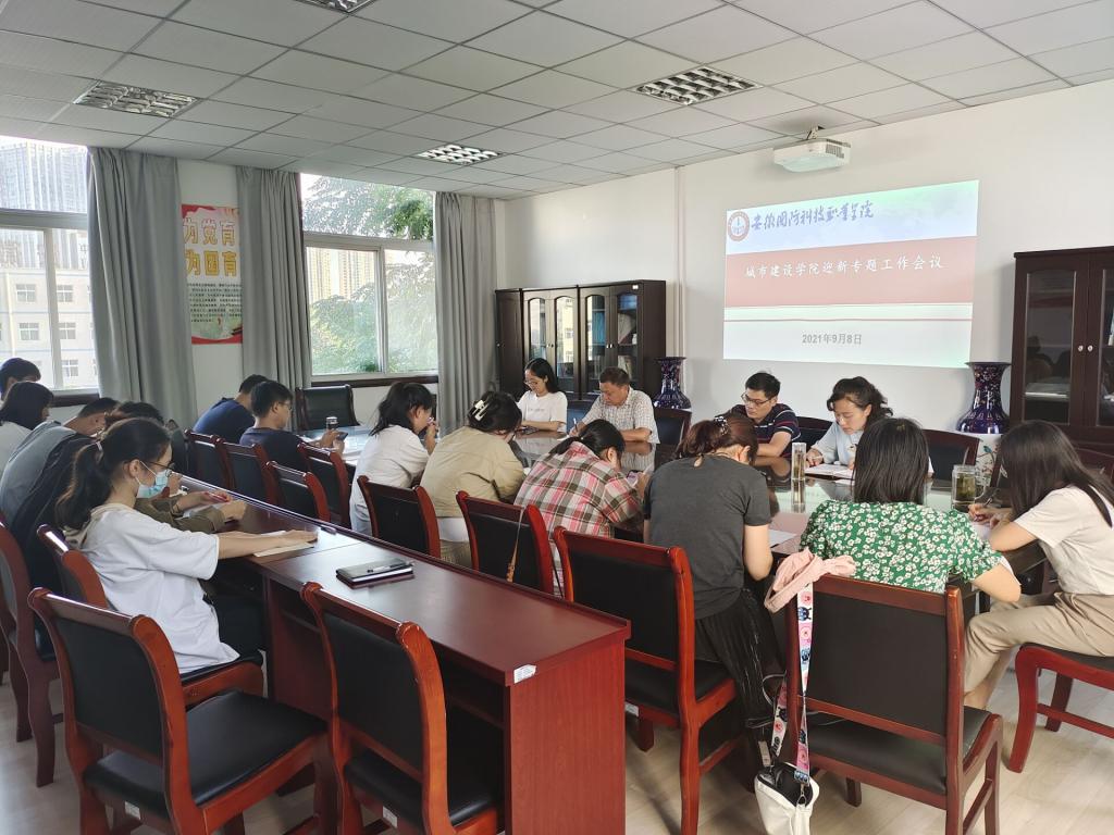 组织召开迎新专题会。城市建设学院于9月8日下午,组织召开迎新工作专题会,传达学校关于做好开学准备工作的相关要求,就积极推进信息化报到系统、开学物资准备、宿舍分配、安全稳定等内容进行认真商讨,周密部署,指导班主任做好开学各项报到工作。