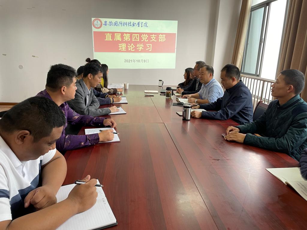 本网讯(学生处 徐婷婷)10月9日上午,直属第四党支部在秉心楼10楼党员活动室召开了支部集中学习会议暨党风廉政教育学习会议。会议由支部宣传(统战)委员张志鸿主持,支部全体党员参与了此次会议。