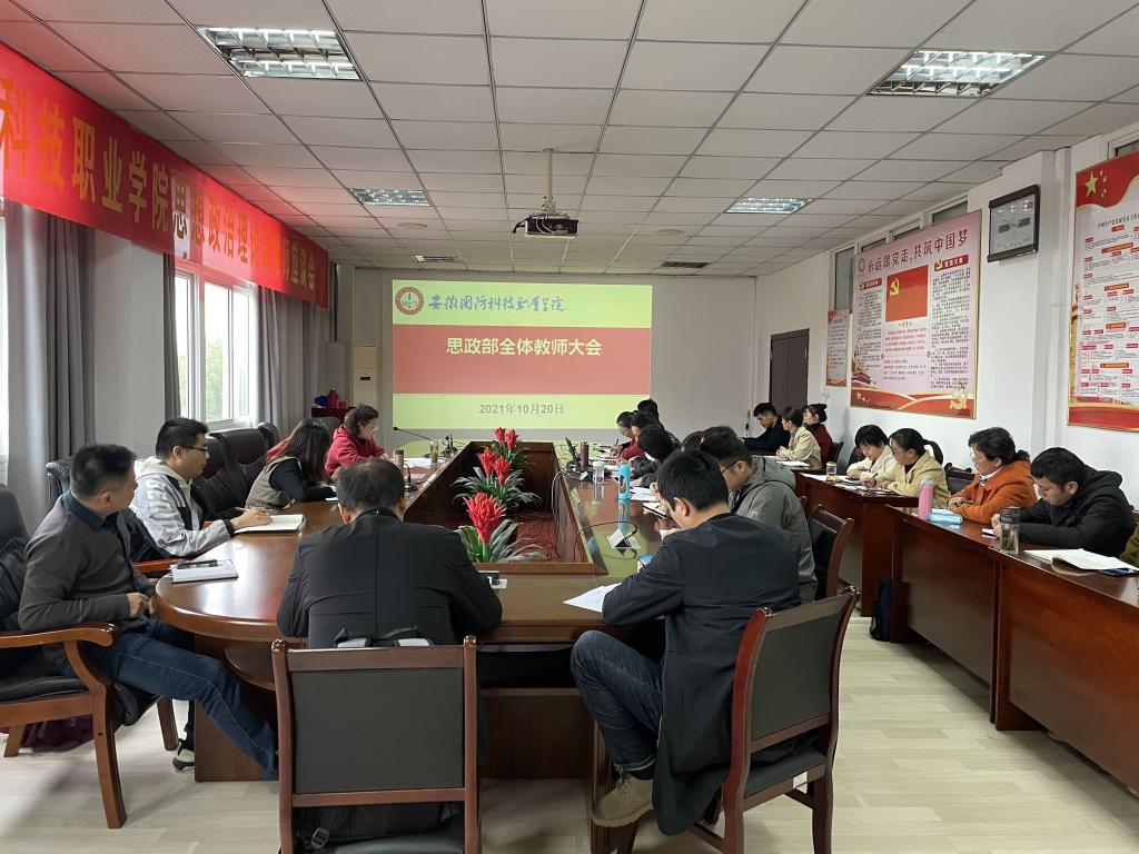陈思指出,在学校“十四五”开局之年,思政部教师要把握新机遇,夯实基础和业务,提升教育教学水平和教科研能力,共同努力打造成为学校优秀教科研团队;发挥思政课立德树人主渠道、主阵地的作用,积极推动思政课程与课程思政同向同行,为培养高技能型人才做出贡献。