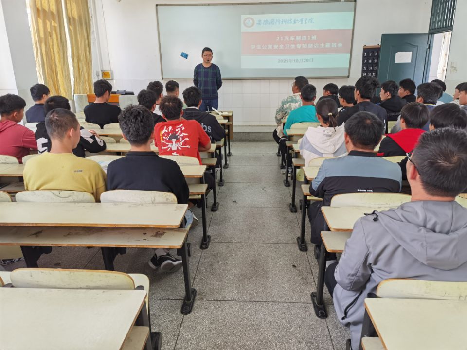 本网讯(汽车技术学院 朱其阳)为进一步强化学生的纪律意识和文明素养,引导同学养成良好的生活学习习惯,努力创建平安有序、文明和谐的公寓环境,根据学校《关于开展学生公寓安全卫生专项整治活动的通知》(校学函〔2021〕60号)文件精神和汽车技术学院辅导员班主任公寓专项整治专题工作会议的要求,汽车技术学院各班级班主任高度重视,认真组织开展了以“强化卫生整治,引领文明新风”为主题的主题教育活动。
