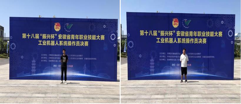 本网讯 9月24日,2021年第十八届 “振兴杯”安徽省青年职业技能大赛工业机器人系统操作员决赛在芜湖圆满落下帷幕,电气技术学院李成林同学以第二名的好成绩荣获一等奖,孟琳森同学荣获三等奖。