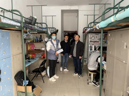 校党委委员信息技术学院副院长沙有闯带队,各年级辅导员、班主任组成检查小组,联合学生处张志鸿处长、刘秦珂老师深入学生宿舍,详细检查学生宿舍安全卫生情况。