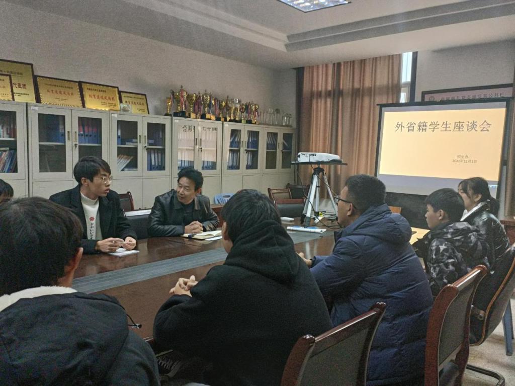 本网讯 2021年12月1日下午16时,校招生办组织15名河北籍新生召开座谈会,了解他们在填报志愿、在校学习生活、职业规划与就业意愿等方面的想法和建议。座谈会由招生就业办主任束传俊主持。