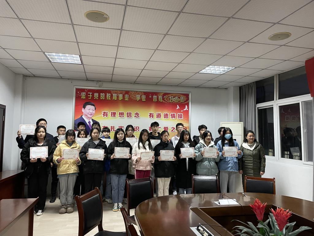 会上,陈思向获奖的同学送上祝贺,并表示获奖同学要继续保持端正的学习态度,再接再厉,形成良好的笔记习惯,掌握正确的学习方法,从而更好地提高学习成绩和学习兴趣;同时,也希望21级新同学能以获奖学生为榜样,做到见贤思齐,向他们学习,向他们看齐,并不断超越,未来展现出更好的表现,营造积极向上的学习氛围。