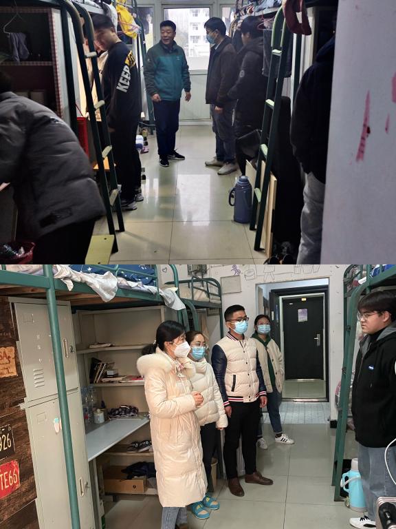 其次,张宗江带领全体辅导员、班主任深入学生宿舍,逐一查看各宿舍卫生和通风情况。与学生进行亲切交谈,叮嘱大家要做好宿舍每天的开窗通风、晨午晚检、卫生消毒和寝室安全工作。