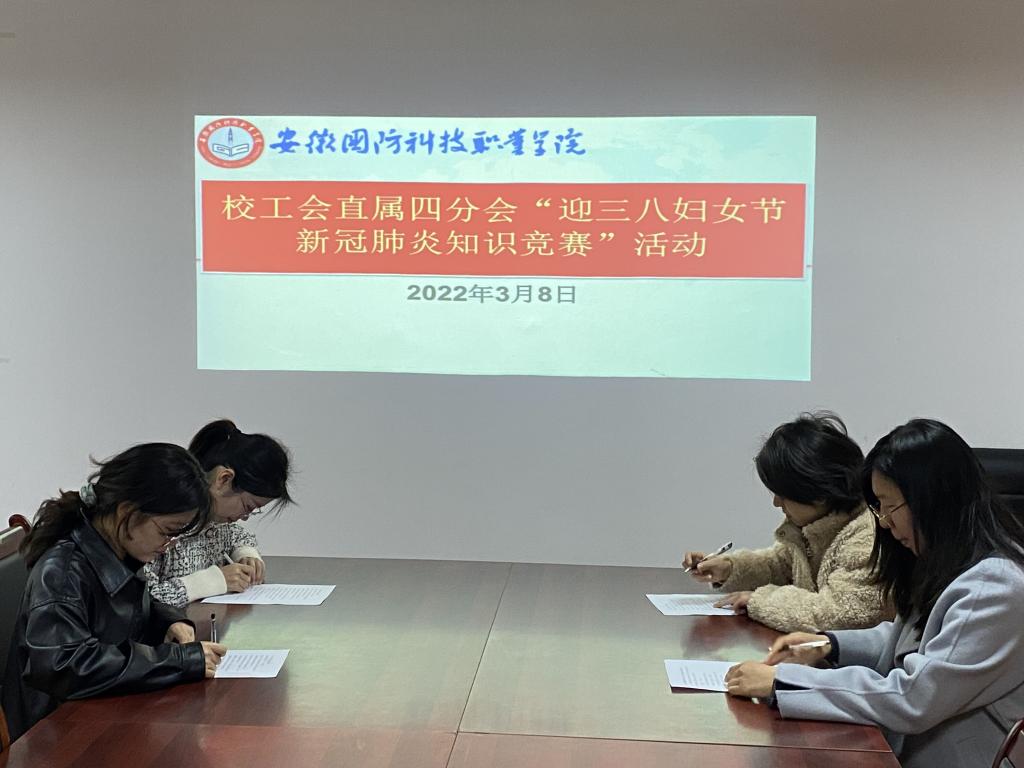 本网讯(学生处 杨超)为庆祝“三八”国际劳动妇女节的到来,校工会直属四分会为丰富女职工的业余文化生活、加强交流,体现学校工会对广大女职工的关爱,结合当前防疫、抗疫形势,进一步激发女同志的工作热情和活力。校工会直属四分会3月8日上午在秉心楼1012会议室开展“迎三八妇女节新冠肺炎知识竞赛”主题活动。