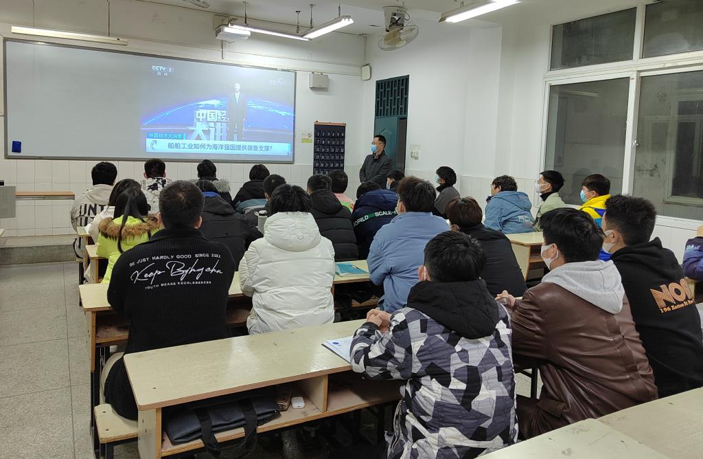 本网讯(电气技术学院 程坤)3月20日晚,中国船舶工业行业协会秘书长李彦庆走进央视财经频道《中国经济大讲堂》,深入解读“船舶工业如何为海洋强国提供装备支撑”,电气技术学院组织船舶专业在校学生集中观看了现场直播。