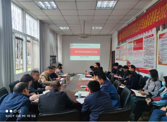 本网讯(电气技术学院 陈俊)为扎实推进电气技术学院各项工作有序开展,做好疫情防控、教育教学、第四届教代会暨工会会员大会代表选举等工作,3月30日下午,电气技术学院组织全体教职工召开全体教职工大会暨第四届教代会暨工会会员大会代表选举会议。会议由电气技术学院党总支书记叶启衡主持召开。