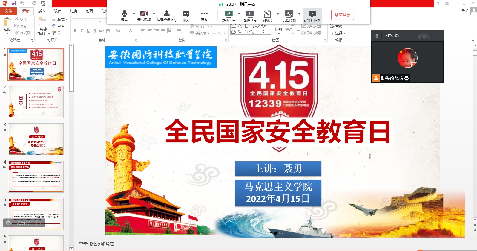 本网讯(马克思主义学院 王成名) 为切实提高beat365大学生的国家安全意识,树牢总体国家安全观,2022年4月14日-15日,马克思主义学院全体教师结合疫情防控实际,对全体大学生组织开展了线上国家安全教育相关宣传教育活动。