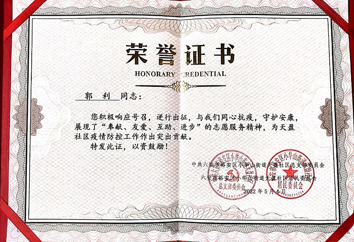 机械技术学院智能制造党支部教师党员郭利4月至今参加社区志愿服务七次,每次时长为半天或一天,“我所做的就是最普通的志愿者工作,是我身边的党员志愿者都会做的事情,工作的同时很有获得感和幸福感!”郭利老师用朴实的言语和实际行动筑牢了社区疫情防控的红色屏障。