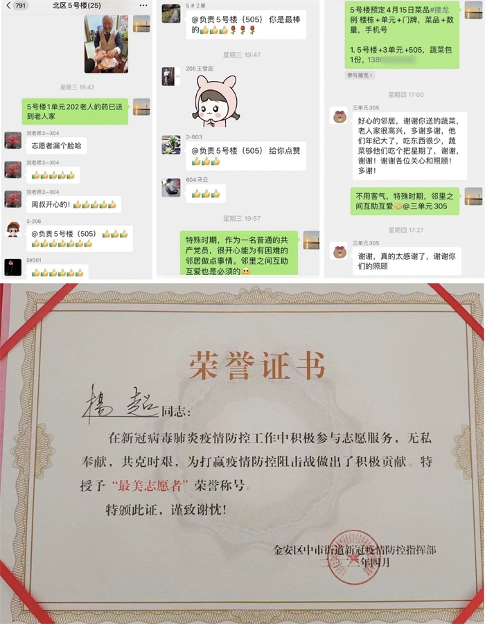 “我是一名共产党员,要认真践行党员始终把人民群众生命安全和身体健康放在第一位的工作宗旨,虽然因疫情封控没能回到单位和同事们一起参加防疫工作,但在这个防控关键时期,积极投入到志愿者工作中,和所有奋战在抗疫战线上的同志一样,尽自己最大的努力,全力以赴做好各项工作,为打赢这场没有硝烟的防疫战而努力,用实际行动去诠释共产党员在关键时期的使命与担当。”杨超在快结束这次志愿工作中感慨的说道,这一句句铮铮誓言是他对党和人民殷殷嘱托的承诺,是功成不必在我,功成必定有我的使命和担当,未来属于青年,希望寄予青年,作为青年教师的他,是青年一代学习的榜样和前进的目标。