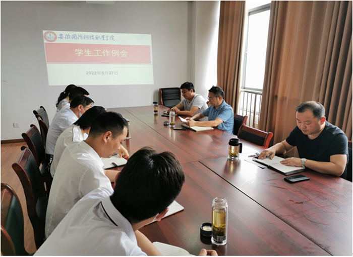 会上,学生处副处长张志鸿就疫情防控、毕业图像采集、毕业资格审查、学籍管理、档案建设、宿舍调整、暑假前后有关工作等进行部署与要求。学生处(安全保卫处)副处长孙策就安全工作等进行部署与强调。
