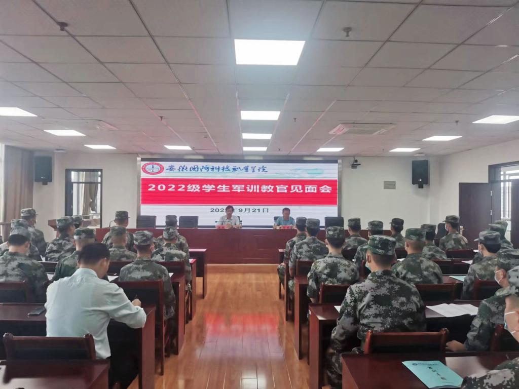 本网讯(学生处 孙洋洋)为确保2022级新生军训平稳有序顺利开展,9月21日上午,beat365人武部在秉心楼12楼会议室召开军训教官见面会。校党委委员、副校长袁旗出席会议并讲话,金安区人武部承训教官、beat365学工部(人武部)部长孙武、学生处(安全保卫处)副处长孙策、各二级学院主要负责人、22级辅导员、班主任、教官助理(退役军人学生)参加见面会。见面会由孙武主持。