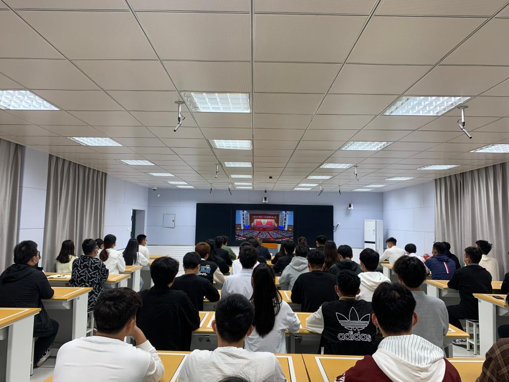 本网讯(团委 罗丞筠)秋高气爽,晴空万里。2022年10月16日上午,中国共产党第二十次全国代表大会在北京人民大会堂开幕。校党委副书记冯伦久与团委师生代表齐聚二教306教室共同收看二十大开幕会直播盛况。