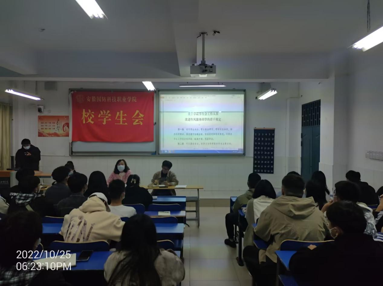 本网讯(团委 罗丞筠)为打造一支思想过硬、作风优良的学生干部队伍,更好地履行学生干部工作职责。10月25日下午,校团委在二教召开学生干部作风建设专题会议,校级各学生组织全体学生干部参加会议,会议由校团委副书记张凤主持。