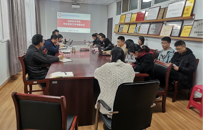 本网讯(信息技术学院 黄双河)10月28日下午,信息技术学院于知行楼304会议室召开学生资助工作专题会议,会议由党总支书记王胜主持,副书记杨庆颖、年级辅导员和班主任参加了此次会议。