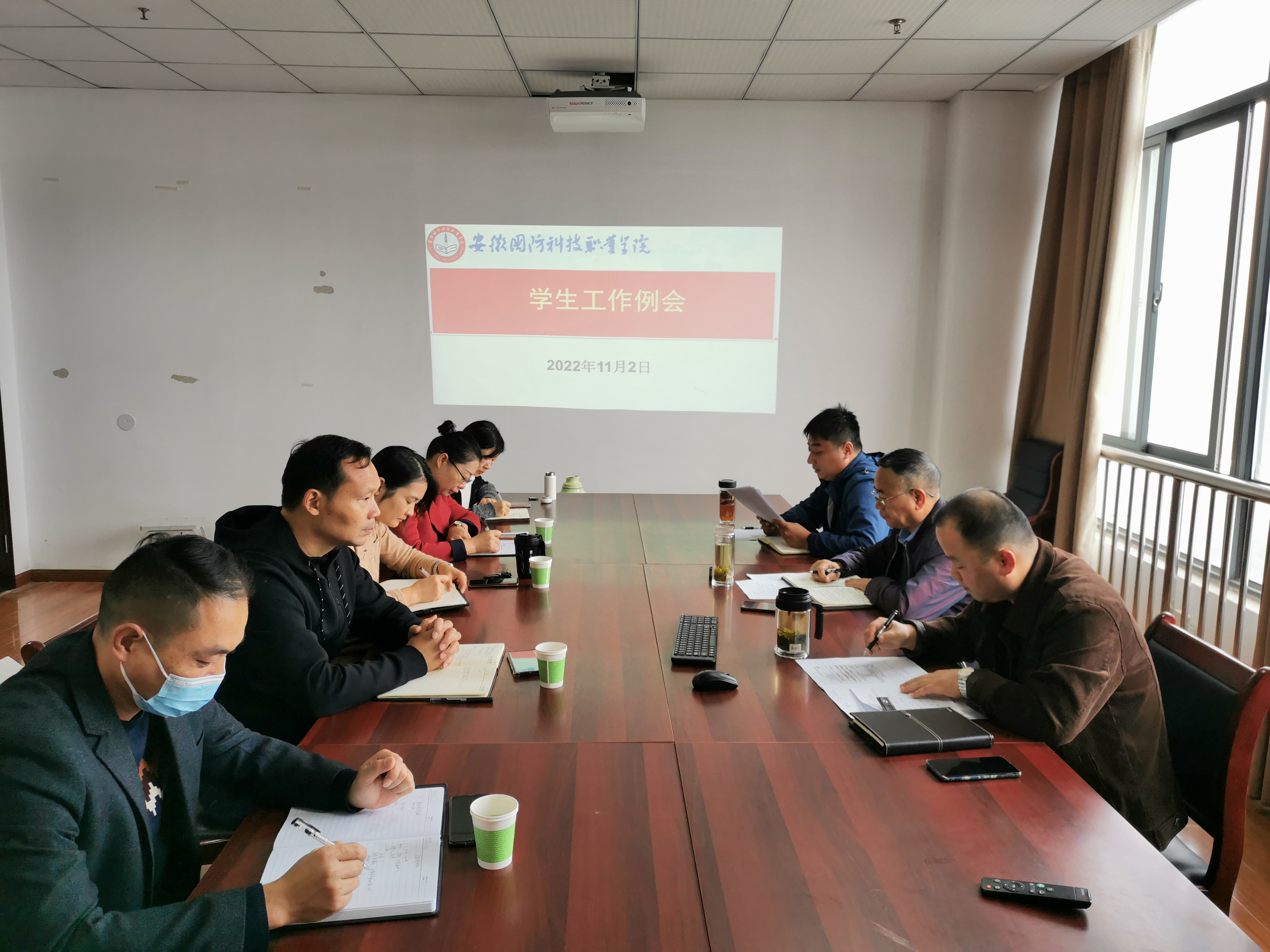 会上,安全保卫处副处长孙策传达近期省教育厅安全方面的文件精神要求,通报了省内几起安全警示案例,并就师生反诈教育、宿舍安全、运动会安全、非机动车辆管理等近期学校安全工作进行了部署和要求。学生处副处长张志鸿就疫情防控、质量年报工作、资助工作、学生评奖评优、2023届毕业生工作、学生公寓管理、学籍注册、信息化系统推进等工作进行了部署和要求。