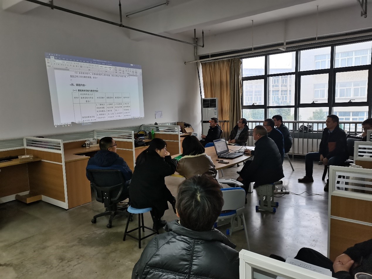 本网讯 根据《关于开展专业核心课程课程标准制(修)订工作的通知》校教函〔2022〕135号文,11月30日下午,智控技术教研室全体老师在秉心楼408,对2022年招生的机电一体化、电气自动化、工业机器人、智能控制技术四个专业的核心课程课程标准进行论证。承担任务的教师逐一从课程性质、课程设计、课程目标、课程内容等进行汇报,重点在课程设计和课程内容中的思政元素融入,经过不断的思想碰撞,推选出五门课程到学院汇报,其他编写有缺陷的需要重新打磨。