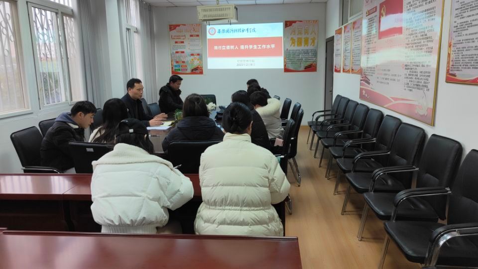 会上,刘峰首先传达了学校“2.6”专题会议和“2.7”学生工作会议精神,带领大家学习了《beat365唯一官方网站2023年春季学期开学和新型冠状病毒感染疫情防控工作方案》《关于对新型冠状病毒感染实施“乙类乙管”的总体方案》等近期关于疫情防控的相关文件。并结合实际,对学生返校、开学第一课、安全教育、疫情防控及班主任深入学生宿舍等近期具体工作进行了部署。