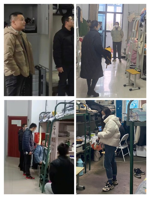 “学院最牵挂的就是你们的平安与健康”,学院领导深入每一间宿舍,详细询问同学们身体健康状况和返校入住情况,耐心解答学生提出的问题。走访期间,学院领导和辅导员围绕健康、生活、学习等开展全面的互动交流,包括新冠肺炎感染等传染病防治、防盗防骗防电诈、宿舍用电安全、宿舍环境卫生整理、同学之间关系处理,以及新学期新规划和考试考证复习准备等。沙有闯勉励同学们在新学期要有新作为,对自己要高标准、严要求,认真学习,加强自律,以崭新面貌迎接新学期。杨庆颖要求同学们仍要做好防护,做自己健康的“第一责任人”,按时如实填报每日健康信息统计表,身体出现异样要及时就诊、排查,积极配合学校的相关管理措施,在合理安排学习、生活的基础上,要加强锻炼,提高自身体能素养。