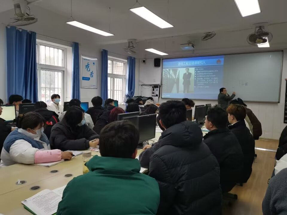 院领导分别听取孙成兵老师22通信1班《路由交换技术》课程和张克亮老师21移互1班《通信工程监理》课程。课程结束后,与授课老师深入交流,了解学生的思想状态、学习生活等情况。