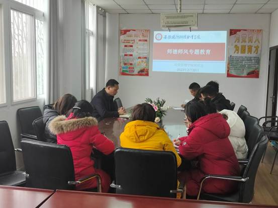 本网讯(经贸管理学院 聂垚)2月22日下午,根据学校党委工作部署,为进一步加强师德师风建设,弘扬新风正气,凝聚师德力量,经贸管理学院党总支组织召开师德师风建设专题会议,各年级辅导员、班主任参加会议,会议由院党总支书记刘峰主持。