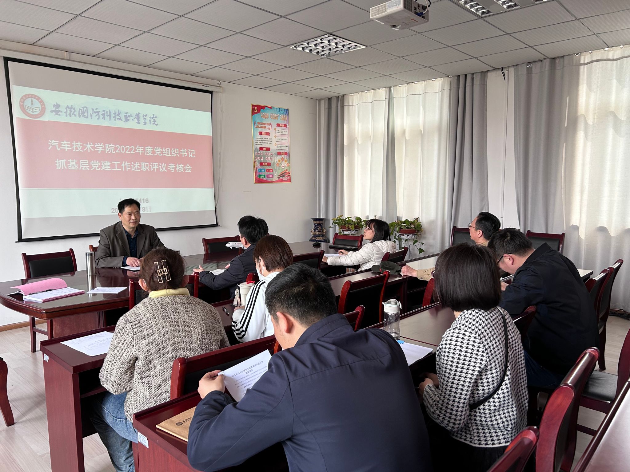 本网讯 为全面提高支部党建工作质量,促进基层党组织进步,进一步抓党建促发展,3月8日下午,汽车技术学院召开基层党组织书记抓基层党建工作述职评议考核会,对下设三位支部书记2022年工作进行考核评议。会议由党总支书记孙良平主持,党总支班子成员、各支部班子成员及部分党员代表参加会议。