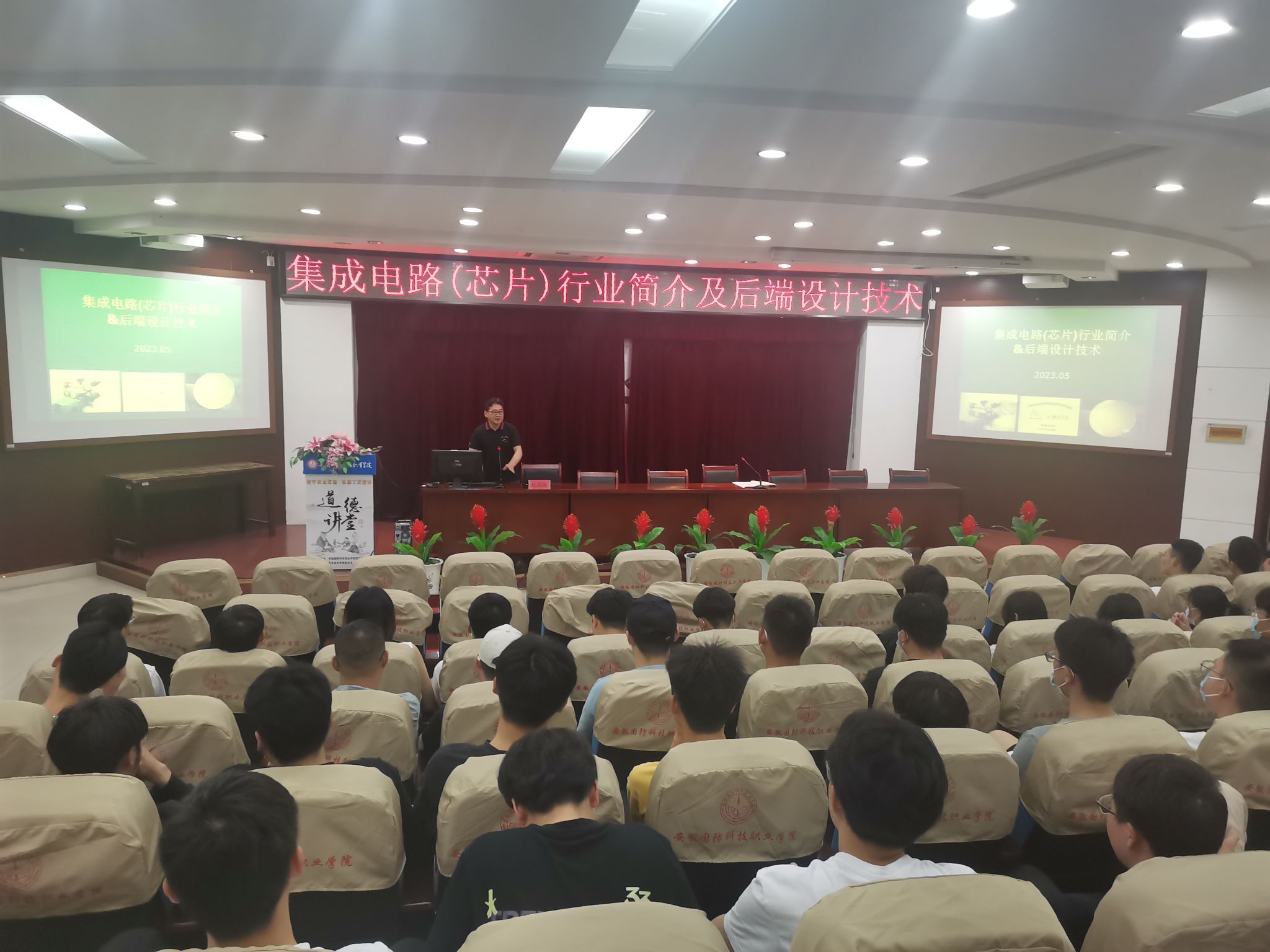 讲座中,杜成涛从我国集成电路行业简介、集成电路(IC)后端设计技术、后端(layout)设计职业概况,要求和特点、校企合作拓展就业方向、后端版图设计等几个方面作了精彩的分享与阐述,希望同学们能够加以领会学习,积极探索思考,不断提升自己的创新意识和创新能力,紧跟技术发展的步伐,不断提升自己的专业综合素养,为我国集成电路产业的发展贡献自己的力量。