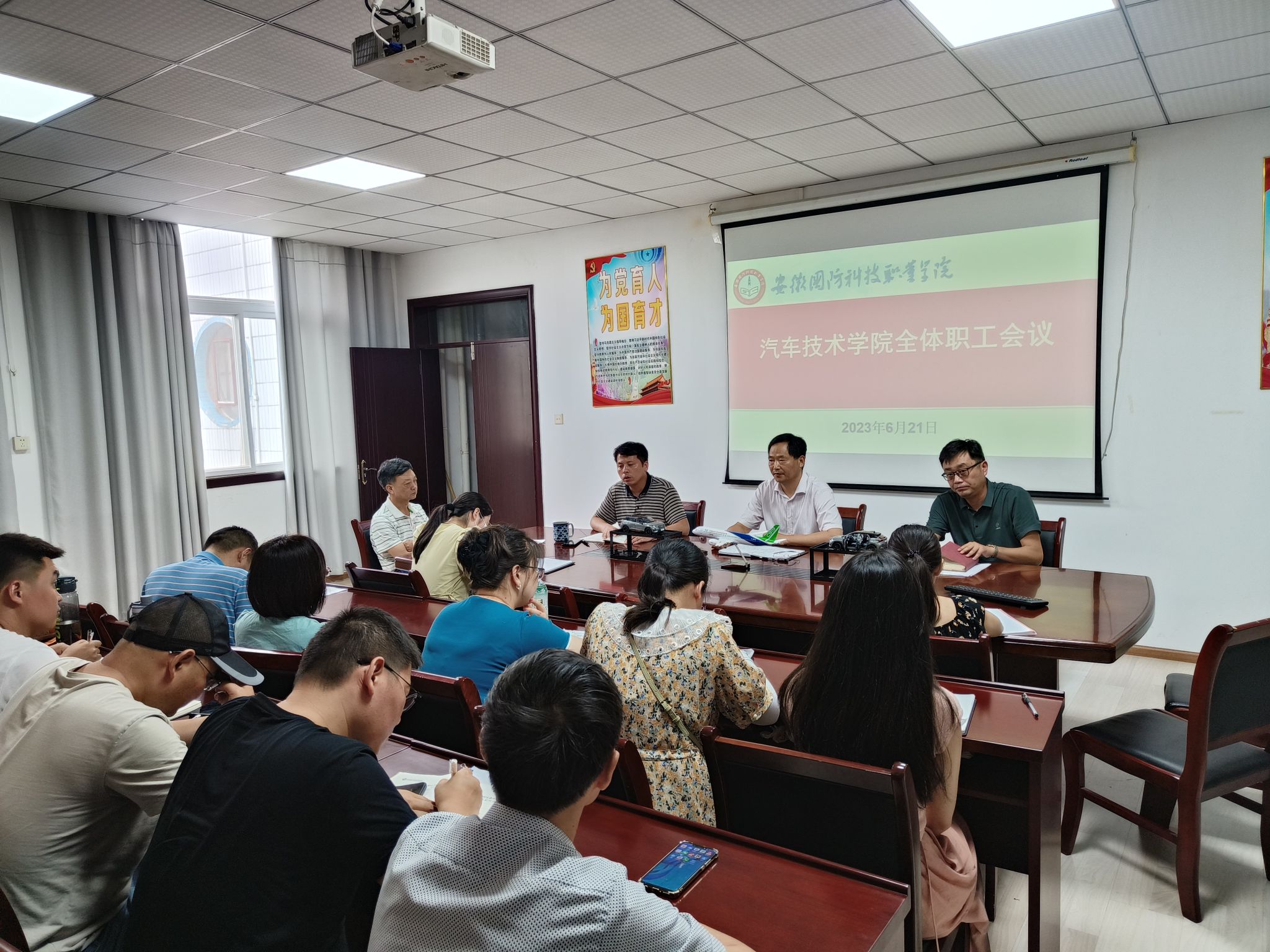 本网讯 为进一步学习领会习近平总书记关于教育的重要论述精神,贯彻落实上级决策部署,6月21日下午,汽车技术学院召开全体教职工会议,积极部署期末重点工作。院党总支书记、院长孙良平主持会议。