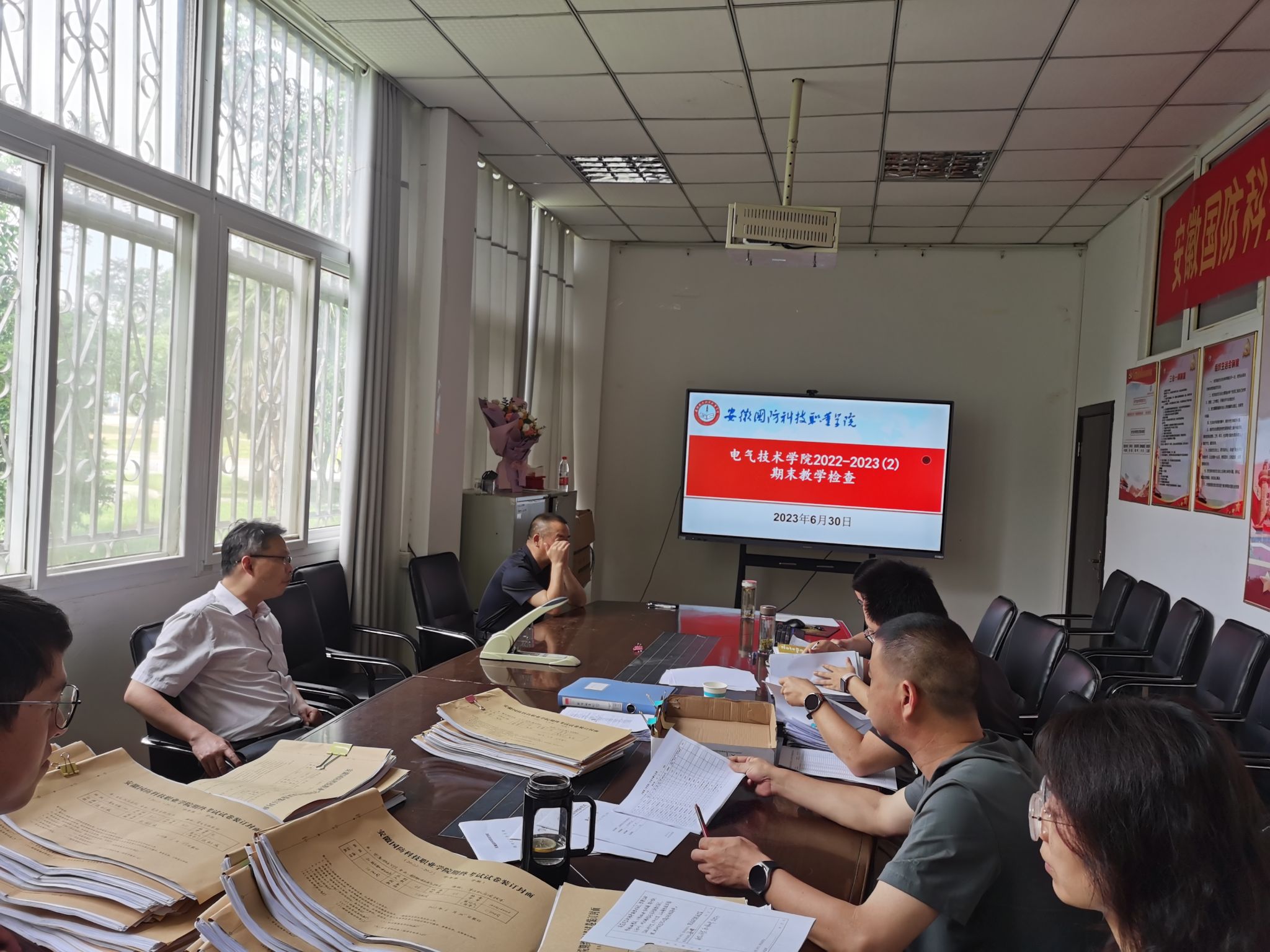 本网讯(电气技术学院 马骙) 为进一步加强教学教研常规管理,夯实学院教学常规工作,确保教学工作的扎实推进,切实提高教育教学质量,6月30日电气技术学院开展了2022/2023学年第二学期期末教学检查工作会议。参加本次检查的人员有:电气技术学院院长李翔、副院长江治国、智能控制技术教研室主任王丽、物联网技术教研室主任程坤、智控技术实训中心主任吴年祥、皖西学院杜成涛和薛新霞以及教师代表陈红和史媛芳等。
