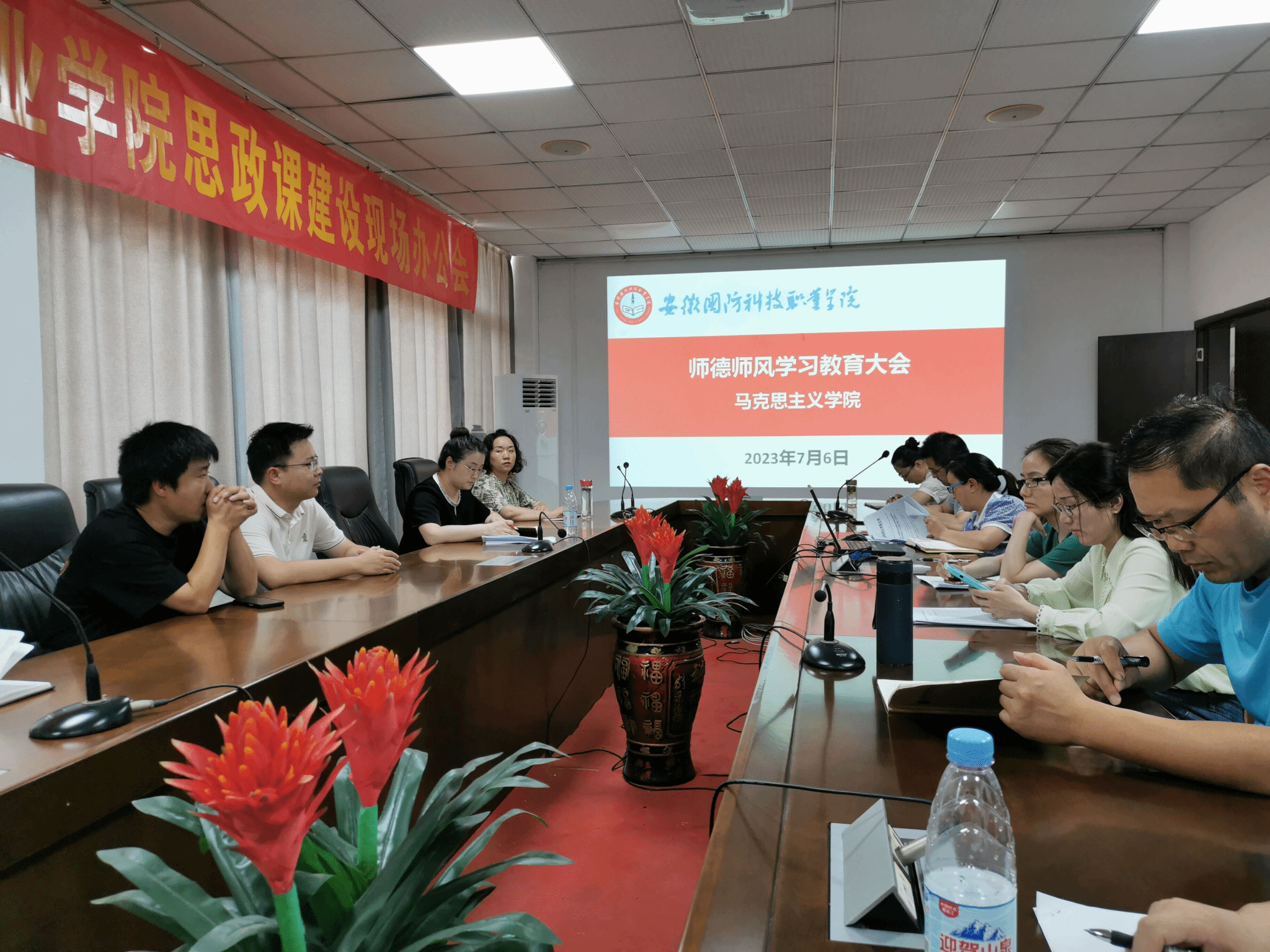 本网讯(马克思主义学院 张艳华)为进一步加强师德师风教育,保障和推进期末工作有序进行,7月6日下午,马克思主义学院在知行楼403会议室召开师德师风学习教育大会暨期末部门职工大会。会议由校党委委员、宣传部部长、马克思主义学院院长陈思主持,马克思主义学院全体教职工参加。