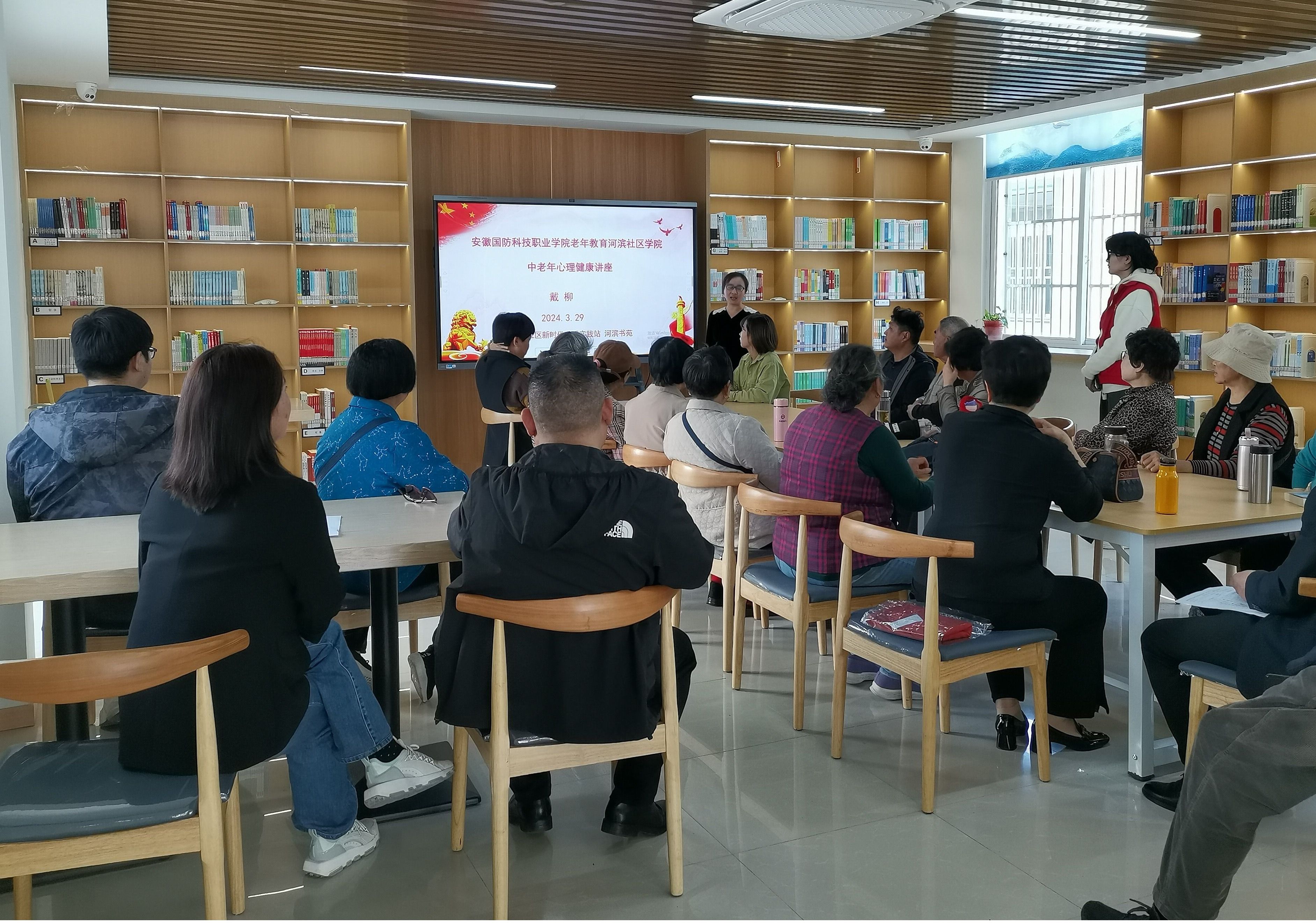 此次培训对象为河滨社区的中老年人群,由戴柳老师担任此次培训活动的主讲教师。讲座内容涵盖了中老年人心理健康的各个方面,包括中老年人心理健康的标准、中老年人常见的心理疾病、抑郁症、退休综合征、空巢综合征、破除困惑乐享生活等。活动中,戴柳为参与者们讲解了老年人常见的心理问题和应对方法,还提供了一些实用的心理疏导技巧。