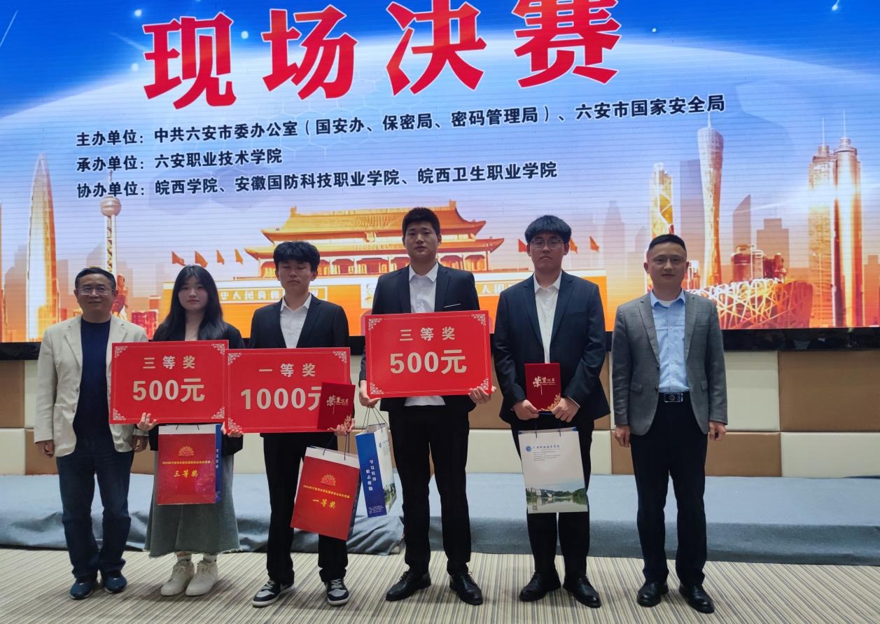 本网讯(电气技术学院 陈俊)4月14日,由中共六安市委办公室(国安办、保密局、密码管理局)、六安市国家安全局主办、六安职业技术学院承办的2024年六安市大学生国家安全知识竞赛活动在六安职业技术学院举行,beat365学生工作部部长孙武带队参加了决赛。经过激烈角逐,beat365代表队表现优异,23通信1班张振平夺得个人一等奖,23模具2班刘国鑫、23信安1班高于鑫获得个人三等奖,beat365代表队荣获团体三等奖。