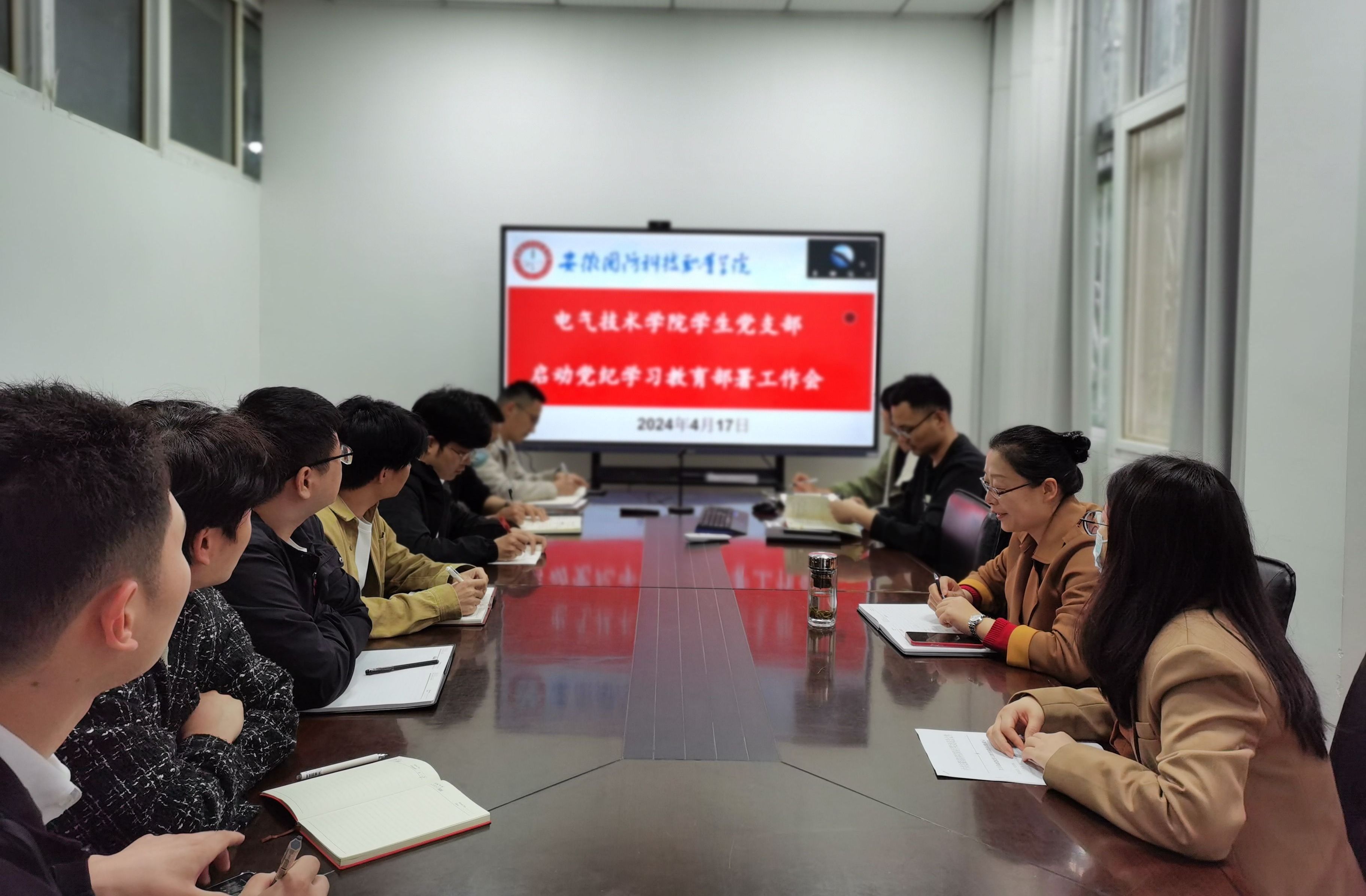 本网讯(电气技术学院 纪远)为进一步强化学生党支部党员的党性修养和纪律意识,推动全面从严治党向基层延伸。4月17日下午,学院学生党支部在学院会议室举行了党纪学习教育部署启动工作会,会议由支部书记张丽主持,全体党员参加。