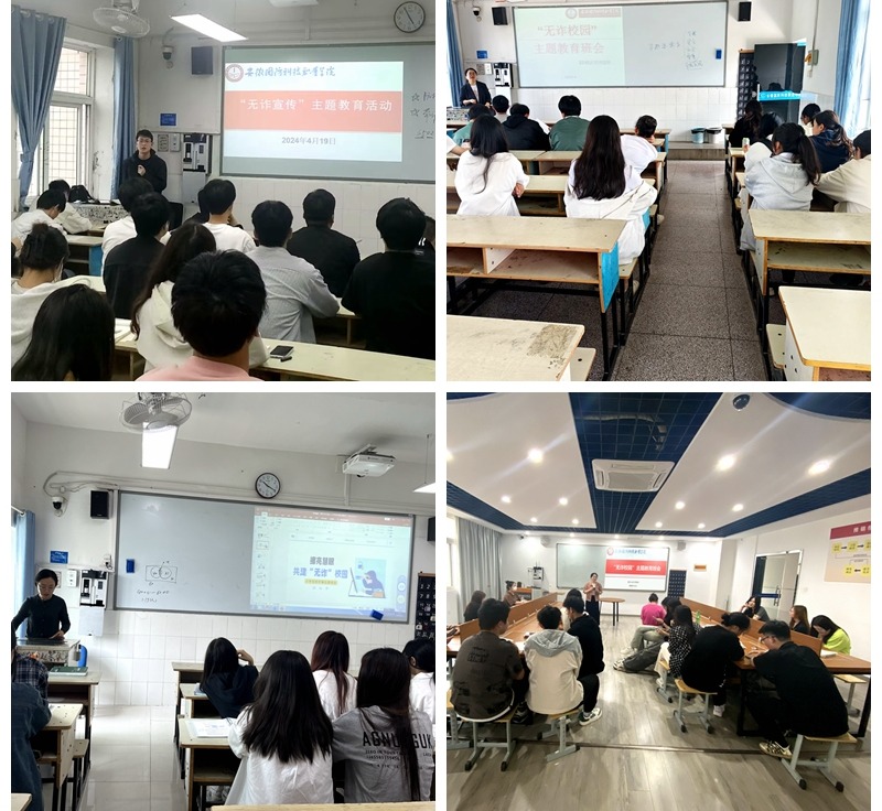 主题班会,强化宣传教育。4月22日至23日,学院各班级组织召开“无诈校园”主题教育班会。会上,各班级辅导员带领学生学习防范校园电信诈骗、防范传销进校园的典型案例和知识,引导广大同学擦亮眼睛,发挥主动性,把抵制诈骗、传销的客观要求转变为同学的自觉行动。