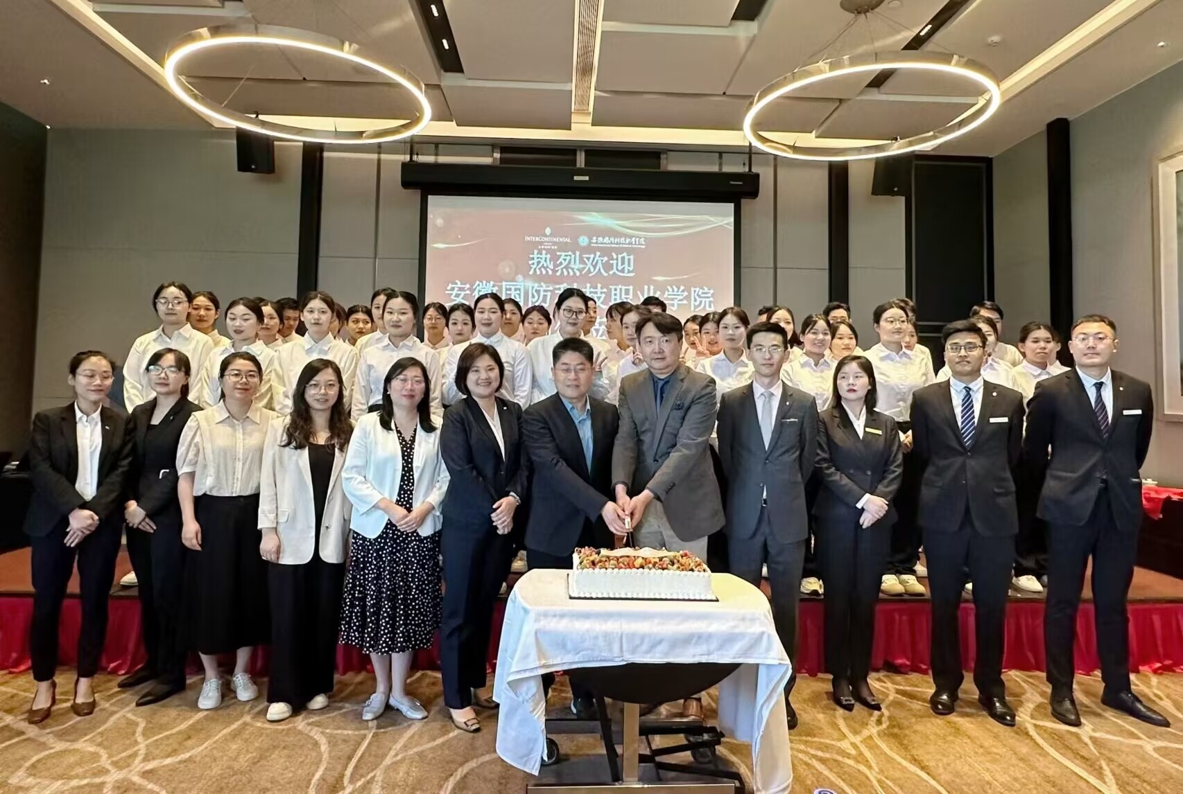 本网讯(经贸管理学院 程雪芬)为深化校企合作,强化产教融合,弘扬尊师重道精神,5月16日至17日,学校分别与合肥洲际酒店、合肥融创文旅城酒店群、苏州书香酒店合作开展23级酒店管理与数字化运营专业现代学徒制拜师仪式系列活动。经贸管理学院院长杨力、副院长杨学分、酒店管理专业带头人司首婧、23级酒店管理专业班主任程雪芬及全体学生出席拜师仪式。