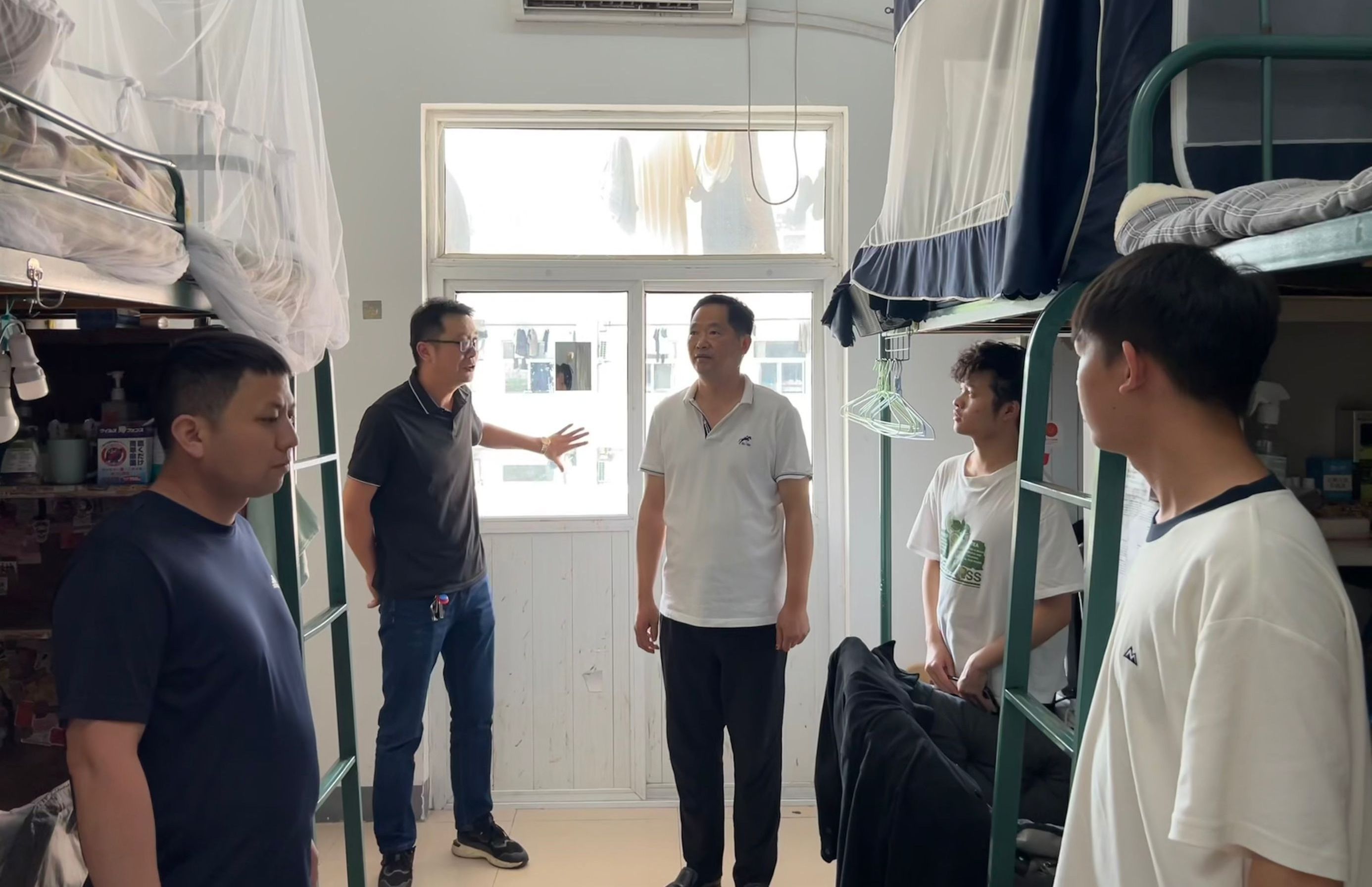本网讯(汽车技术学院 张洋洋)为切实做好学生宿舍消防安全教育,推进宿舍消防安全排查整治常态化,5日29日下午,汽车技术学院党总支书记孙良平、党总支副书记余桂刚带领汽车技术学院全体辅导员深入学生宿舍,开展消防安全卫生大检查。