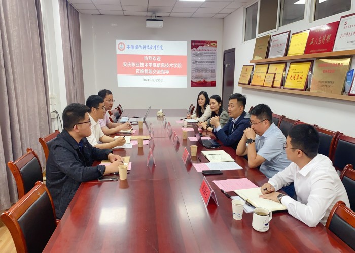 沙有闯首先对疏国会一行表示欢迎,并介绍了学校的历史沿革、师资队伍以及信息技术学院的发展历史、学科建设、师资队伍、双高专业群建设等方面的基本情况。疏国会也详细介绍了安庆职业技术学院以及信息技术学院的基本情况、党建引领业务发展情况、全国第四批样板党支部建设、专业建设和师资队伍建设等情况。