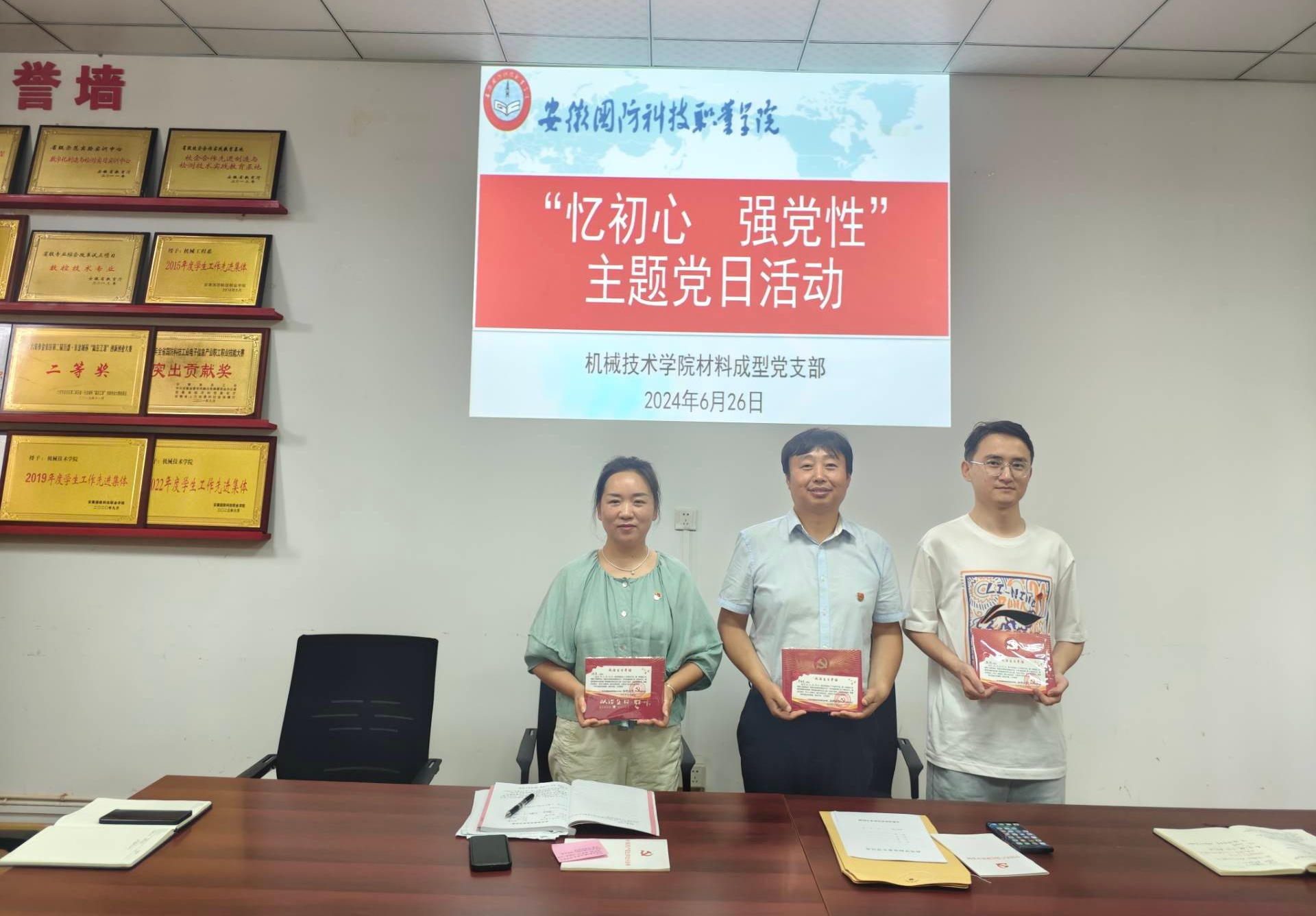 本网讯(机械技术学院 柏媛媛)为迎接中国共产党成立103周年,不断推动党纪学习教育走深走实,6月26日,机械技术学院材料成型党支部,在知行楼120会议室组织开展了“忆初心 强党性”主题党日活动。
