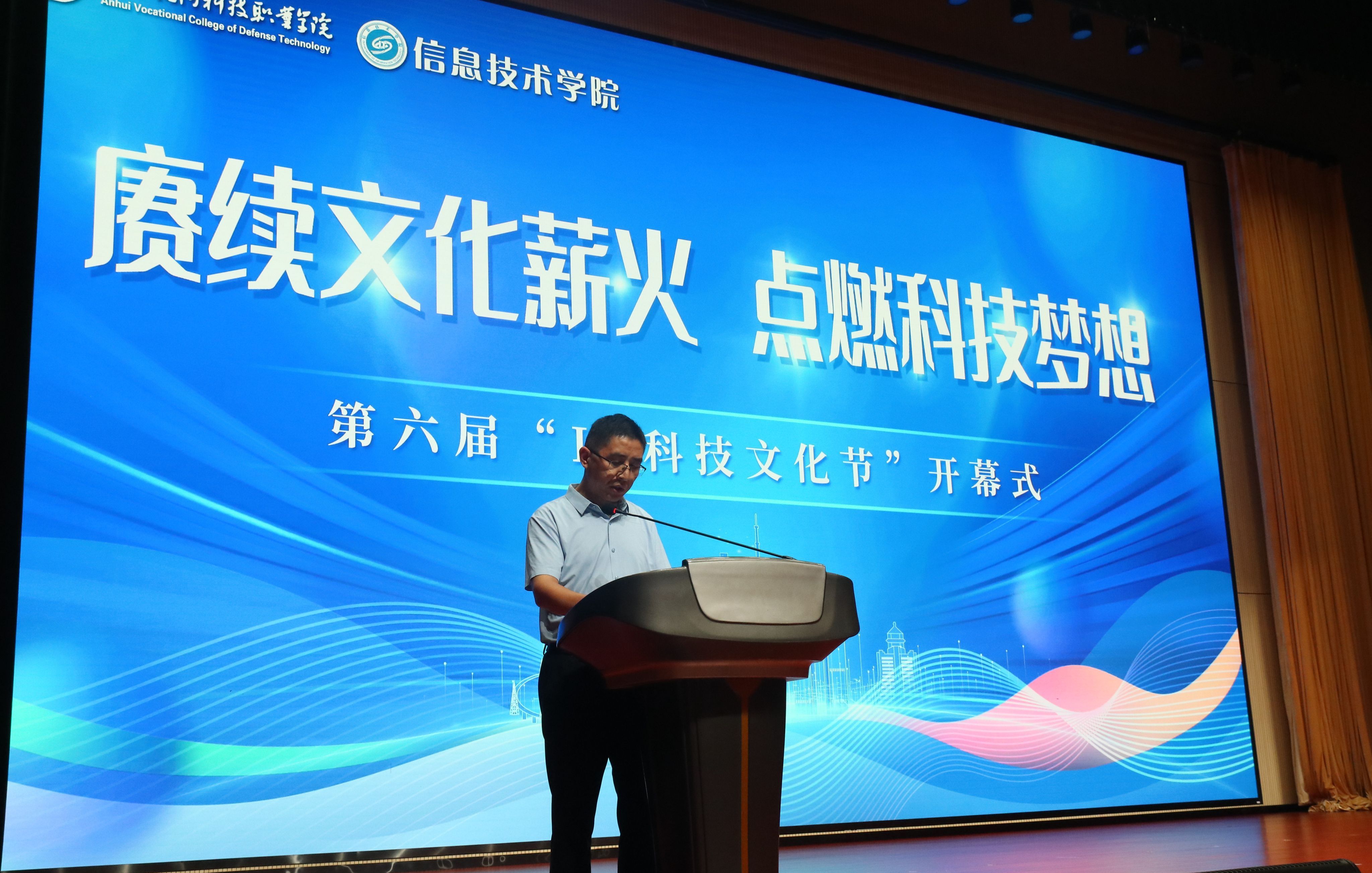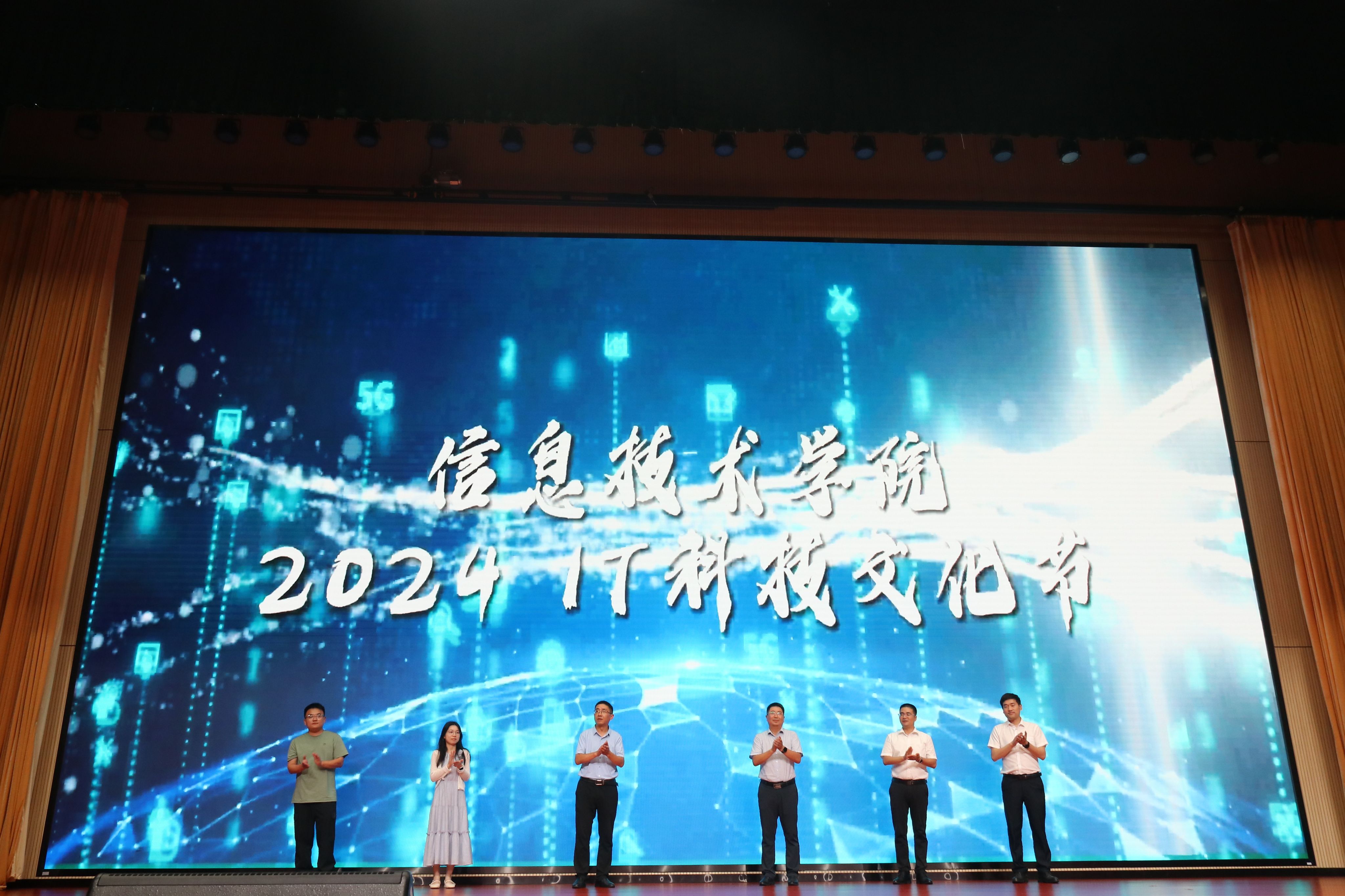 本网讯(信息技术学院 孙颖凯)为了引导学生了解IT前沿,加强学生的IT素养,激发学生的IT创新热情,全面提高学生综合素质,充分展示学生“厚德 强能 励志 笃行”的精神,6月28日晚,信息技术学院第六届“IT科技文化节”开幕式在产教融合中心多功能报告厅隆重举行。学院党总支书记王胜、副院长雷惊鹏、学院党总支副书记杜洪宇以及学院部分教师出席,来自六个学院的500余名同学参加了活动。