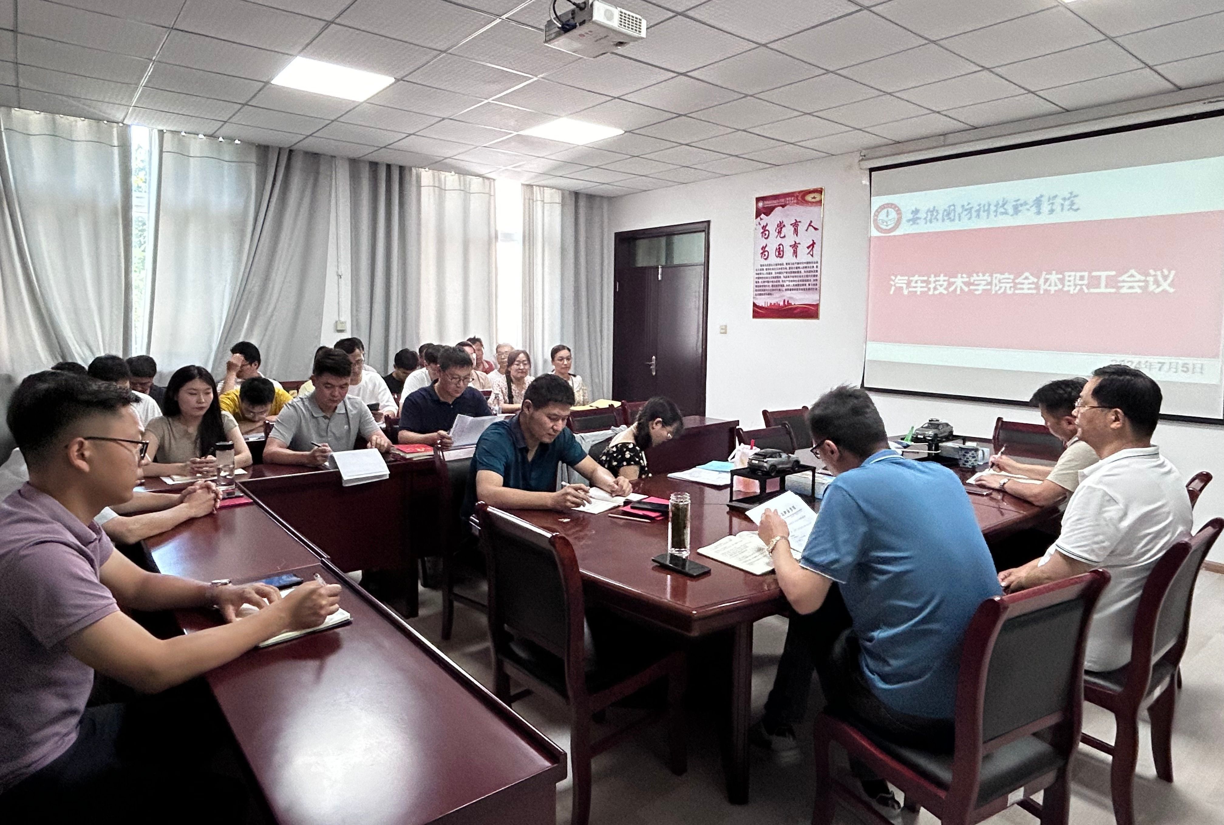 本网讯(汽车技术学院 任培培)为深入贯彻落实习近平总书记关于教育的重要论述精神及上级决策部署,及时总结工作经验,为新学期工作奠定坚实基础,7月5日下午,汽车技术学院召开全体教职工会议,研究部署期末及暑期重点工作。党总支副书记余桂刚主持会议。