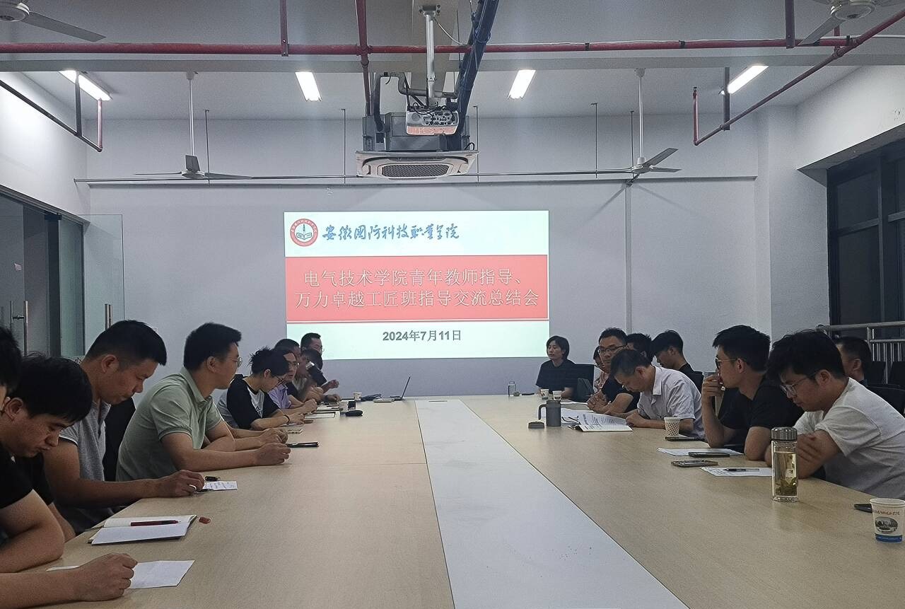 本网讯(电气技术学院 孔军)7月11日上午,电气技术学院在产教融合中心三楼会议室召开了青年教师指导、万力卓越工匠班指导交流总结会,电气技术学院19位青年教师及其指导老师,以及全体万力卓越工匠班指导老师参加了本次会议,会议由电气技术学院院长李翔主持。